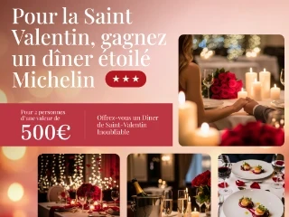 Participez à notre jeu et tentez de gagner un dîner étoilé Michelin pour deux, d’une valeur de 500€, pour une Saint-Valentin mémorable.